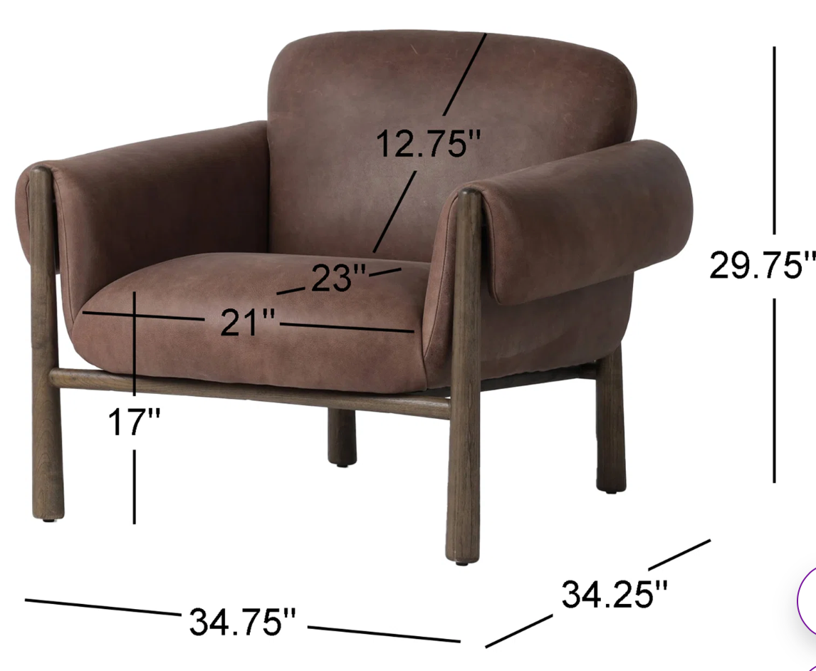 Brown Birch Lane Dabria Genuine Leather Armchair – Wrapped Arms, Sleek Modern Style