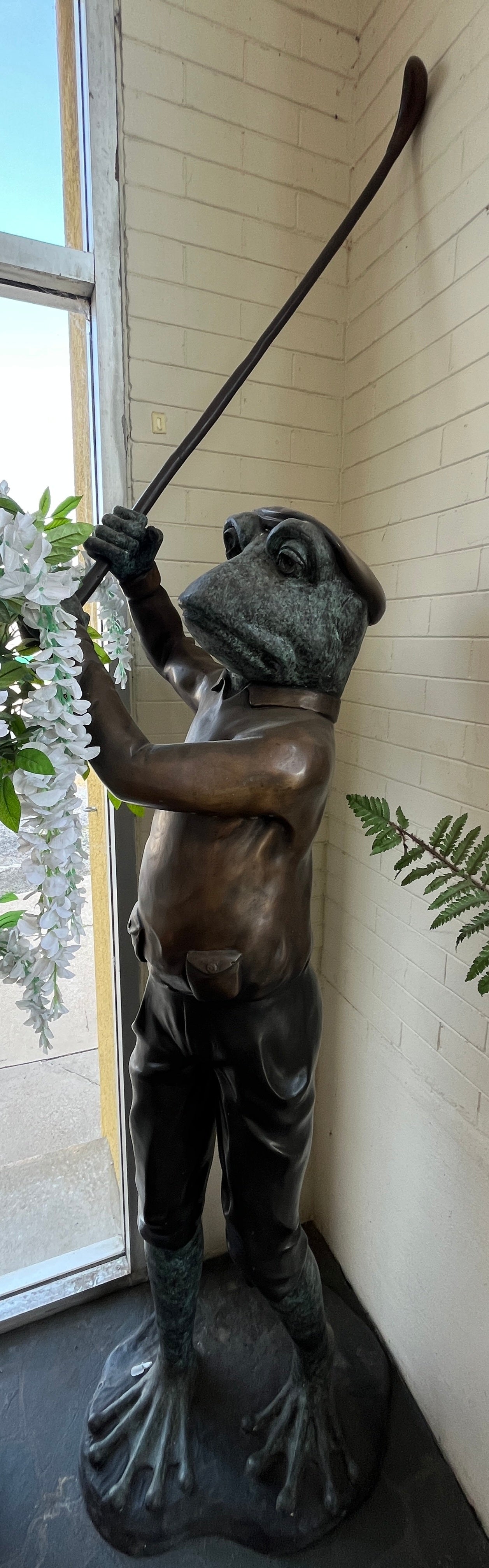 Bronze Golfing Frog Garden Statue – 71" Yard Art Sculpture | Local Pickup Only