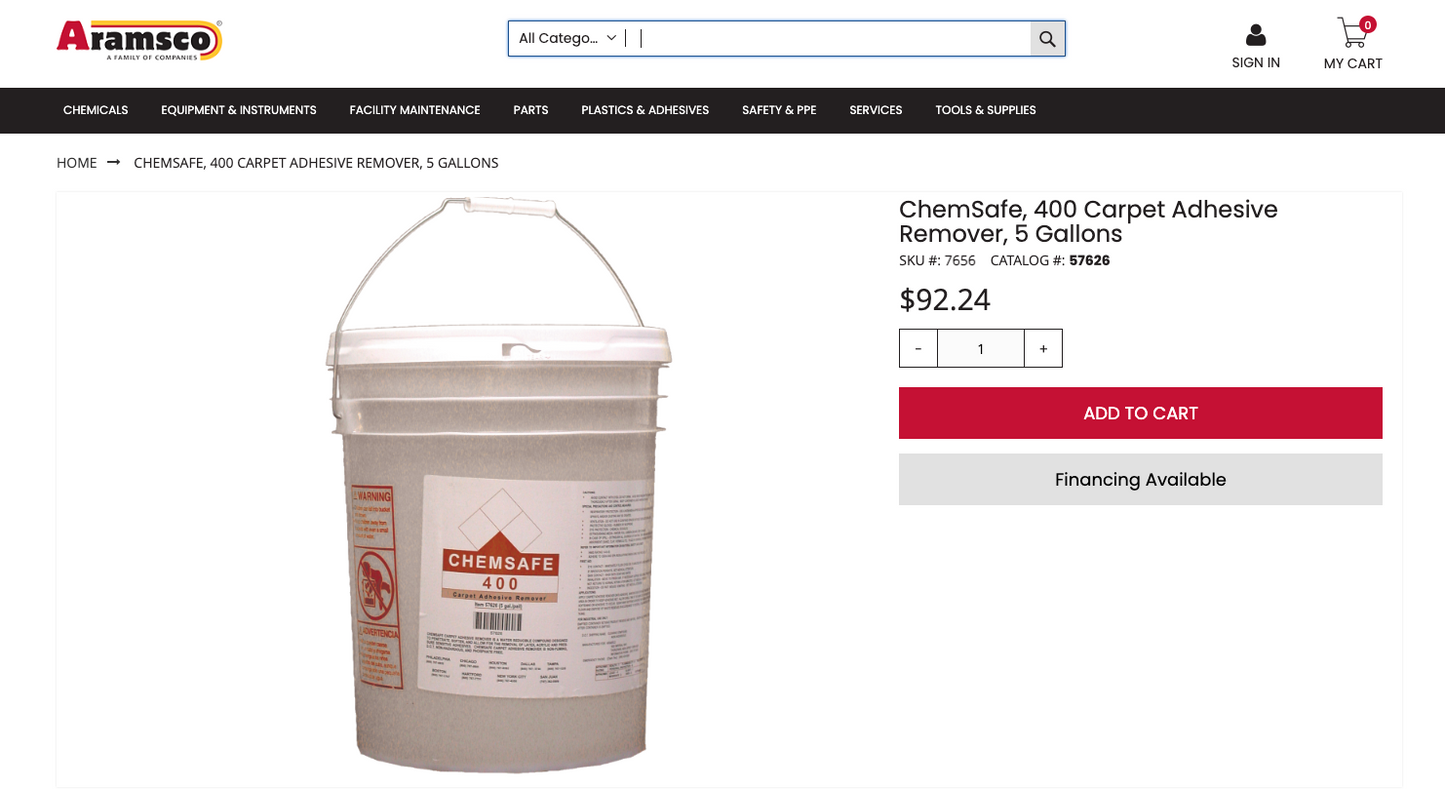ChemSafe 400 Carpet Adhesive Remover is a powerful industrial-grade solution designed to effectively remove thin to heavy adhesive residues from flooring surfaces. Ideal for contractors, flooring professionals, and maintenance crews, this 5-gallon pail offers high performance in both diluted and undiluted applications.