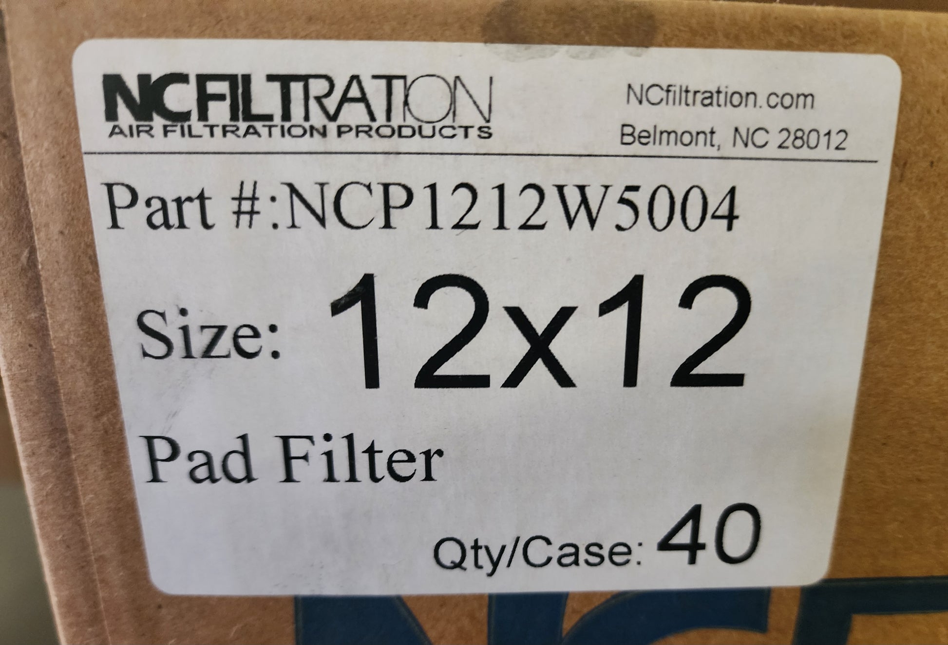 NCFiltration Pad Filter. 12 x 12. 40/Case. NCP1212W5004
