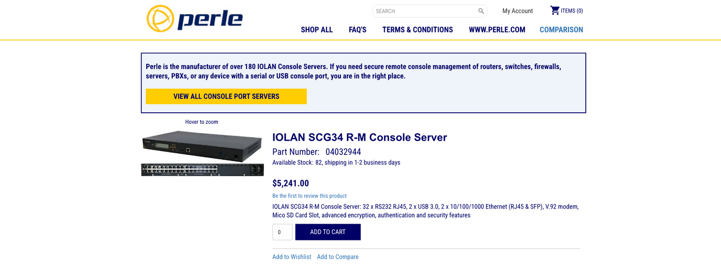 The Perle IOLAN SCG34 R-M Console Server delivers powerful, flexible, and secure remote access to your network infrastructure. With support for 32 RS232 ports, 2 USB ports, integrated V.92 modem, and robust security features, it’s the ideal out-of-band management solution for data centers and enterprise environments.