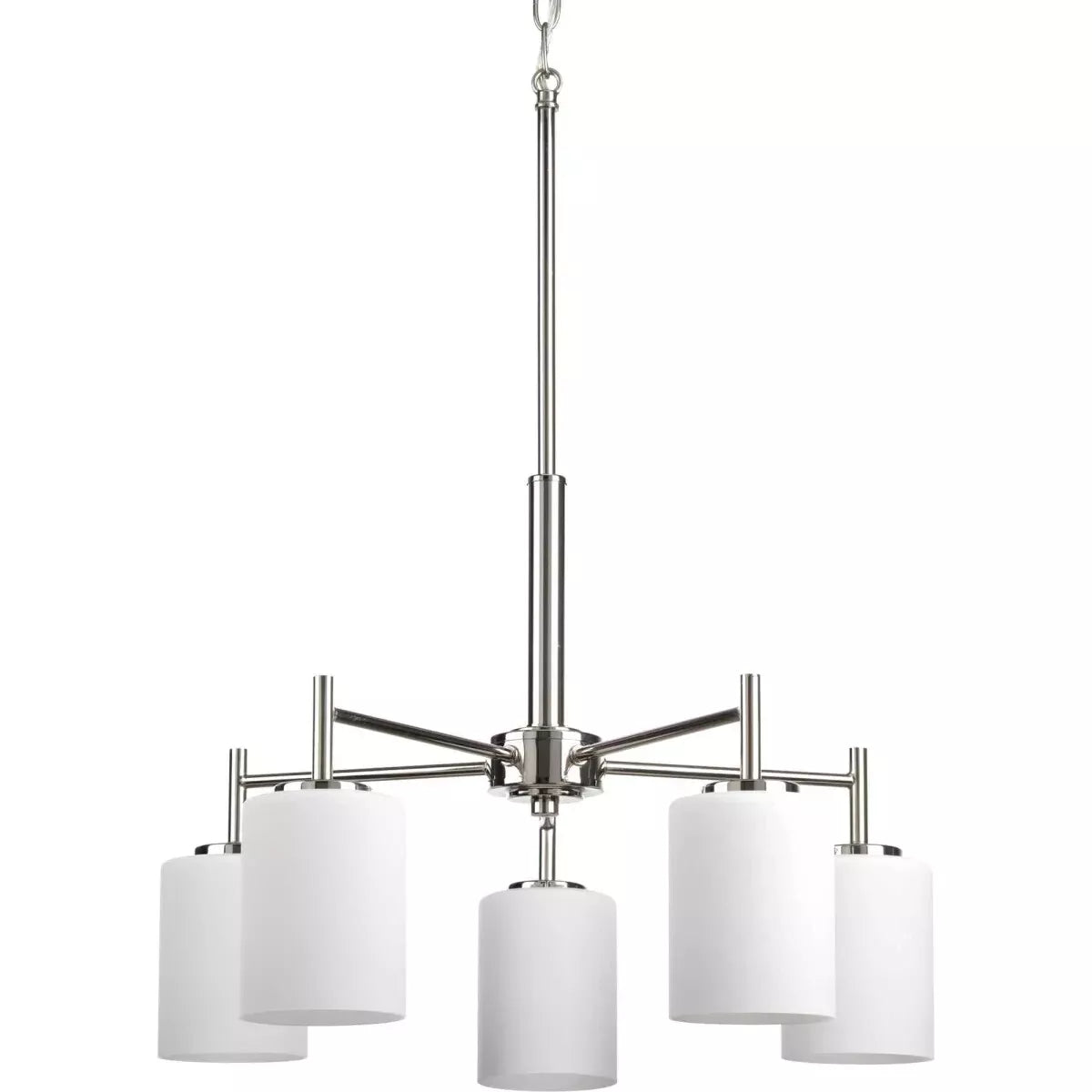Elevate your home's ambiance with the Progress Lighting Replay 5-Light Chandelier. Featuring a sleek brushed nickel finish complemented by etched glass shades, this chandelier offers a contemporary design that seamlessly integrates with various interior styles. Its five-light configuration provides ample illumination, making it an ideal centerpiece for dining areas, living rooms, or entryways.
