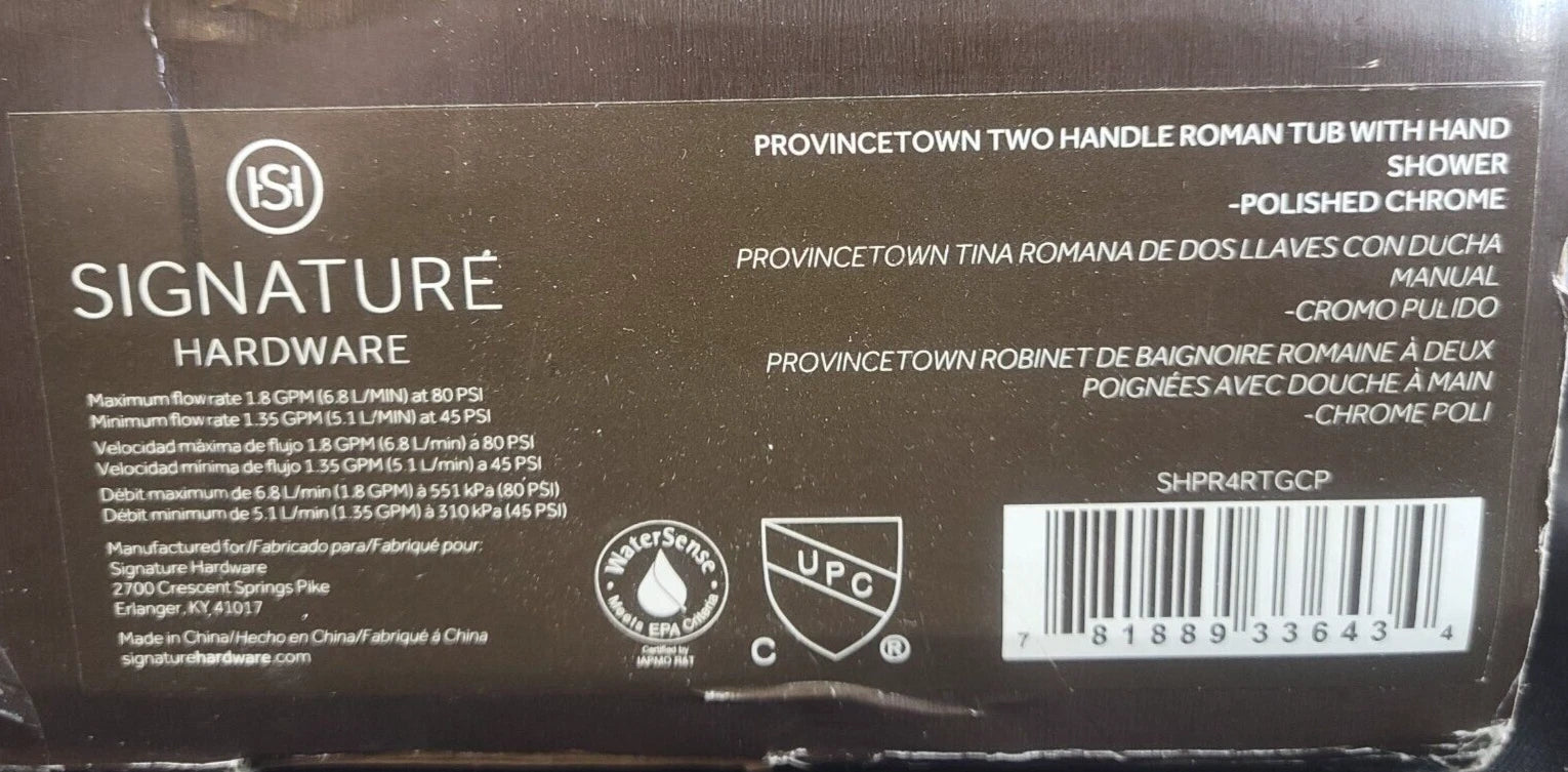 Signature Hardware Roman Tub Faucet w/ Hand Shower – Chrome – Deck Mount